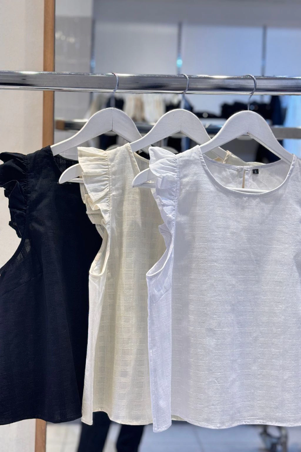 Blusa de tela algodón con un patrón de cuadros entrelazando de hilos urdimbre y trama.